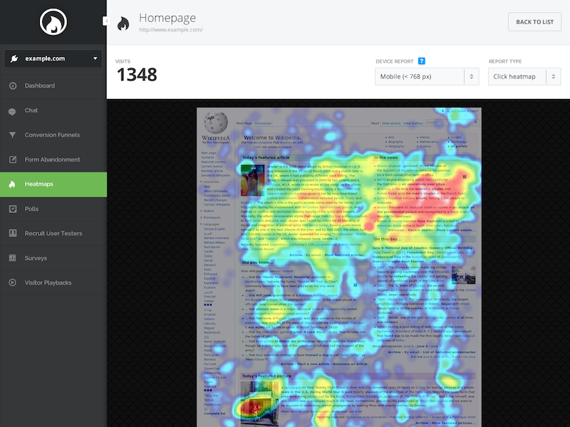 Screenshot de Hotjar. Heatmaps